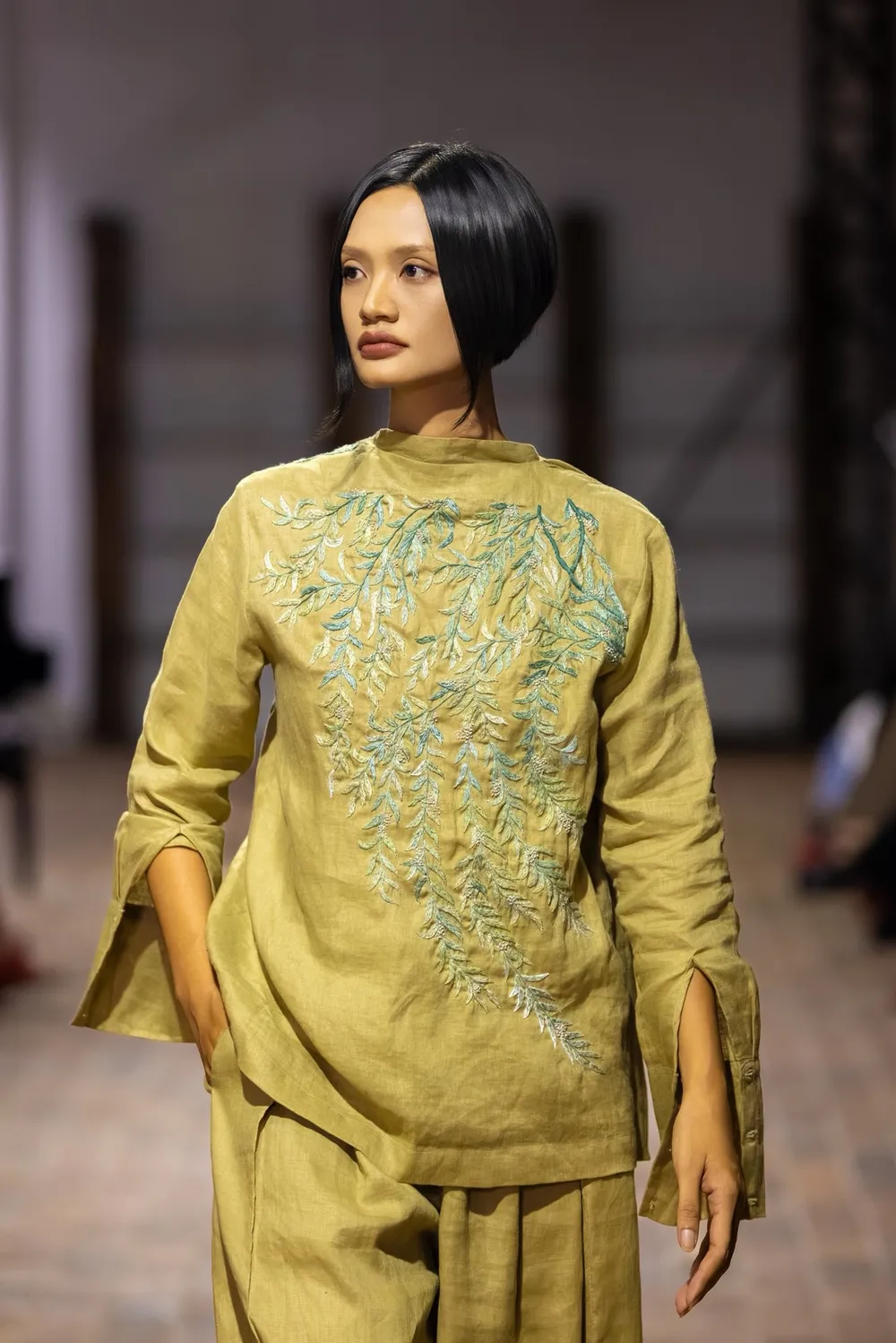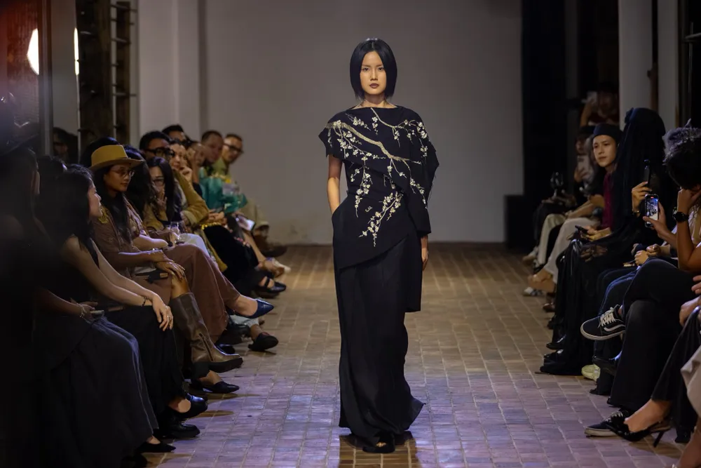 Bộ sưu tập ‘Nhìn đời bằng đôi mắt trong’ lấy cảm hứng từ những tác phẩm sơn mài cổ điển và nghệ thuật thêu tay truyền thống. Các thiết kế trong bộ sưu tập mang đến một phong cách mềm mại, với đường nét tối giản nhưng thấm đẫm chất thơ. Đây không chỉ là một bộ sưu tập thời trang, mà còn là một lời mời gọi người xem chiêm ngưỡng vẻ đẹp của thế giới qua lăng kính đương đại – trong trẻo, thanh nhã và đầy tinh thần nghệ thuật.