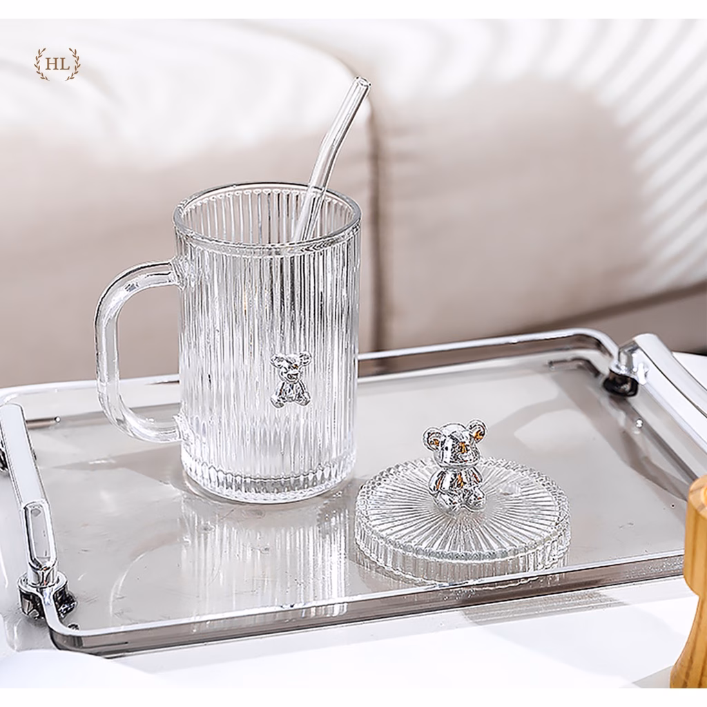 🔥 LY THỦY TINH CÓ NẮP HÌNH GẤU BEABRICK BẠC | Cốc TT có nắp hình gấu tặng kèm ống hút thủy tinh đang giảm giá!