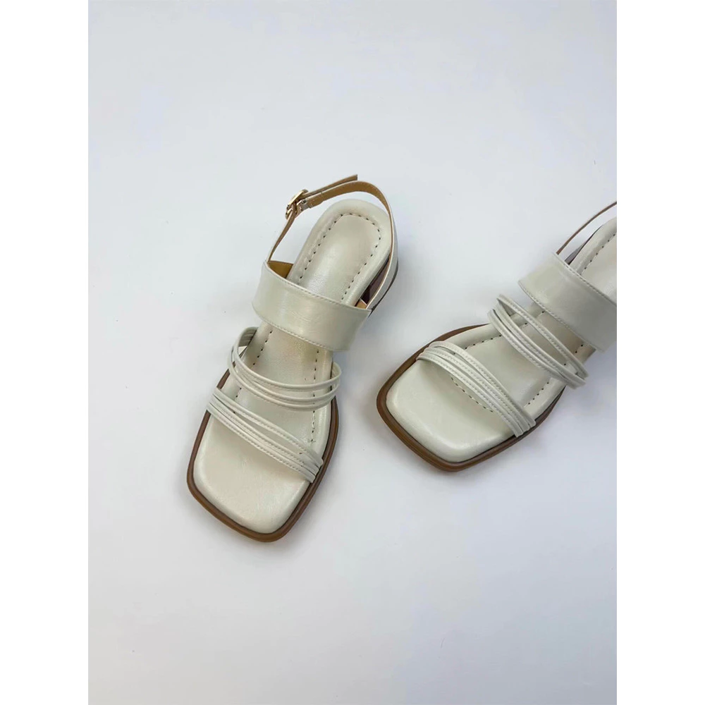 🔥 Phiên Bản Da Cừu ~ Phong Cách Mới Tất Cả Trận Đấu Shit-Steping Da Thật Chính Hãng Đi Lại Giày La Mã Thời Trang Tối Giản Mũi Vuông Giày Sandal Gót Dày đang giảm giá!